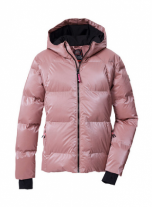 Bunda Killtec 43594 je voděodolná, má sněžný pás, kapsu na skipass a náplety v rukávech, kapuca na pevno.