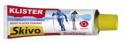 Tekutý vosk Skivo KLISTER 50 g, červený, je běžecký stoupací vosk, ideální pro mokrý jarní sníh nad 0 °C, zajišťuje skvělou přilnavost i skluz.